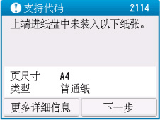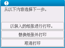 如果在打印时指定的纸张设置与在打印机上注册的上端进纸盘纸张信息不同,则打印机触摸屏上将出现以下信息。