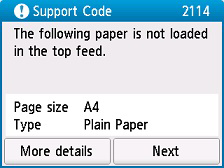 If the paper settings specified when printing differ from the paper information for the top feed registered on the printer, the following message appears on the printer's touch screen.