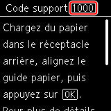 Lorsqu'un code support et un message s'affichent sur l'écran LCD de l'imprimante :