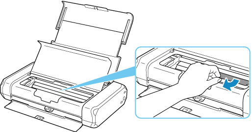 Dacă hârtia îngustă, cum ar fi hârtia de dimensiune unei cărţi de vizită, este blocată deoarece a fost încărcată cu orientare de tip vedere, îndepărtaţi hârtia blocată urmând procedura de mai jos.
