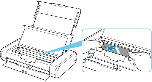 - Če se je zagozdil ozek papir, kot je papir velikosti vizitke, ker je bil naložen v ležeči usmeritvi, ga odstranite s spodnjim postopkom.