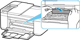 Jei po kasetės FINE laikikliu yra įstrigusio popieriaus, paslinkite kasetės FINE laikiklį į dešinįjį arba kairįjį kraštą atsižvelgdami į tai, kaip lengviau išimti popierių.