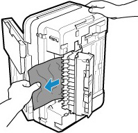 Įstrigusio popieriaus ištraukimas iš galinės spausdintuvo pusės
