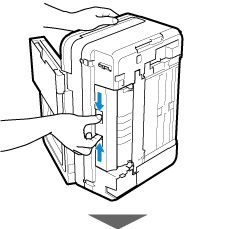 Når du drar ut det fastkjørte papiret, støtter du skriveren med hånden slik at den ikke faller ned.