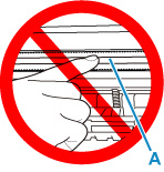 Pri uklanjanju prepreke kretanju držača uloška FINE pripazite da ne dodirnete prozirnu foliju (A).