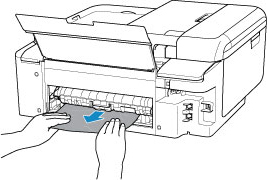 - Jos paperi jää kiinni tulostuksen aikana ja sen poistaminen edellyttää tulostimen virran katkaisemista, pysäytä tulostus painamalla tulostimen Pysäytä (Stop)-painiketta, ennen kuin katkaiset tulostimen virran.