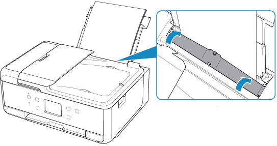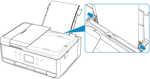 Aliniaţi ghidajele pentru hârtie ale tăvii din spate, cu ambele margini ale hârtiei.
