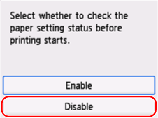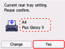 Kontrollige paberiinfot (paberi suurus ja kandja tüüp) ja valige Jah (Jah (Yes)).