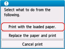 Valige Prindi laaditud paberiga. (Print with the loaded paper.).