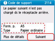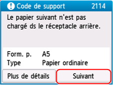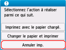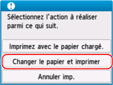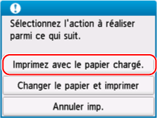 Remarque- En fonction des paramètres de voter imprimante, le message Imprimez avec le papier chargé. pourrait ne pas s'afficher.