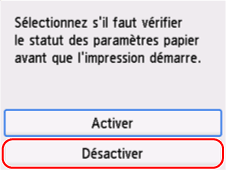 Pour désactiver la fonction de détection de discordances des paramètres de papier, suivez les étapes ci-dessous.