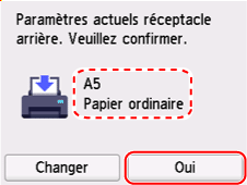 Confirmez que les informations papier affichées correspondent aux paramètres d'impression, puis sélectionnez Oui.