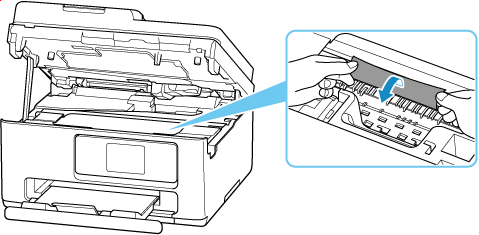Jika kertas yang macet ada di bawah penahan kartrij FINE, pindahkan penahan kartrij FINE ke sisi kanan atau kiri terjauh, yang dapat memudahkan untuk mengeluarkan kertas.