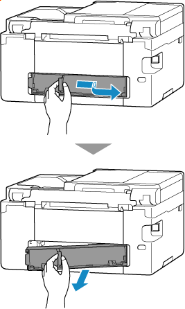 Tarik kembali tatakan belakang dan tatakan keluaran kertas.