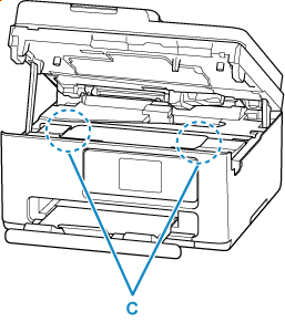 • กระดาษเหลืออยู่บริเวณพื้นที่ว่างด้านซ้ายและขวา (C) ในเครื่องพิมพ์หรือไม่