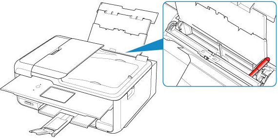 Hvis der er fremmedlegemer i den bagerste bakke, skal du sørge for at slukke printeren, trække printerstikket ud af strømforsyningen og derefter fjerne fremmedlegemet.