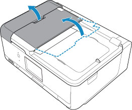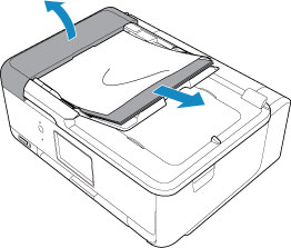 Feche a bandeja de documentos e abra a tampa do alimentador de documentos lentamente.
