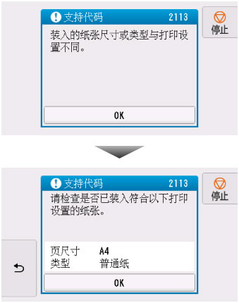 - 想要更改打印或复印纸张设置时,请选择此选项。 更改纸张设置并重试打印。