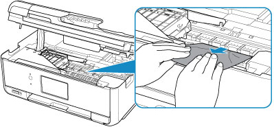 如果卡纸在打印头固定器下方,请将打印头固定器移动到右边缘或左边缘(更容易取出卡纸的一侧)。
