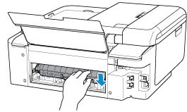 Ouvrez le couvercle du réceptacle arrière, puis tirez le support papier vers le haut.
