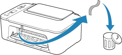 Strângeţi extensia tăvii de ieşire şi tava de ieşire a hârtiei, deschideţi capacul şi asiguraţi-vă că banda de livrare şi materialul de protecţie au fost îndepărtate de pe suportul pentru cartuşe FINE.