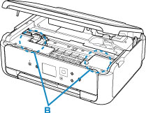 - Zůstal papír v prázdném prostoru vlevo či vpravo (B) v tiskárně?