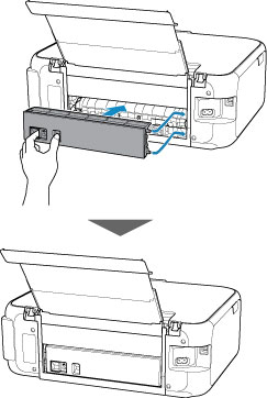 Illessze a hátsó fedél jobb oldali kiálló részét a nyomtatóba, majd addig nyomja a hátsó fedél bal oldalát, amíg teljesen a helyére nem kerül.