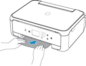 - Jika tidak ada satu pun dari tindakan di atas yang dapat diterapkan, lihat Mengeluarkan Kertas yang Macet dari Sisi Belakang untuk membuka penutup belakang dan mengeluarkan kertas.