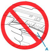 Ketika membersihkan halangan yang menghambat gerakan penahan kartrij FINE, berhati-hatilah agar tidak menyentuh sabuk putih (A).