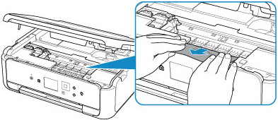Ja iestrēgušais papīrs ir zem FINE kasetnes turētāja, bīdiet FINE kasetnes turētāju uz tālāko labo vai kreiso malu atkarībā no tā, kā ir vieglāk izņemt papīru.
