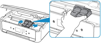 Bīdot FINE kasetnes turētāju, turiet FINE kasetnes turētāja augšpusi un lēnām bīdiet to uz tālāko labo vai kreiso malu.