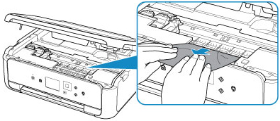 Hvis det fastkjørte papiret er under FINE-kassettholderen, flytter du FINE-kassettholderen helt inntil høyre- eller venstrekanten. Gjør det som er enklest for å fjerne papiret.