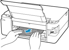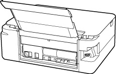 Вкарайте издадените части от дясната страна на задния капак в принтера и след това бутнете лявата страна на задния капак, докато не се затвори докрай.