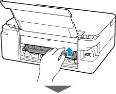 背面カバーの右側の突起をプリンターの穴に入れ、背面カバーの左側をしっかりと押し込んでください。