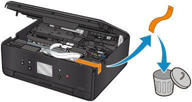 Відкрийте модуль сканування / кришку та переконайтеся, що з тримача друкуючої головки знято захисну стрічку для транспортування.