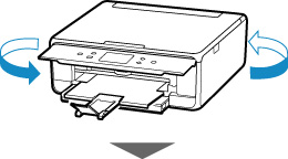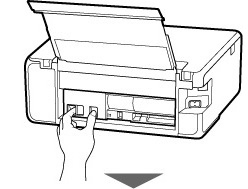 Indsæt de fremstikkende dele på højre side af dækslet på bagsiden i printeren, og skub derefter på den venstre side af dækslet på bagsiden, indtil det er helt lukket.