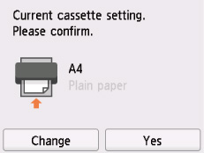 Επιλέξτε Ναι (Yes) στην οθόνη αφής για να ολοκληρώσετε τον καθορισμό των ρυθμίσεων χαρτιού για την κασέτα.