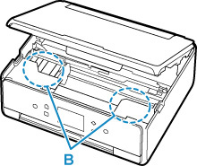 - Υπάρχει χαρτί στον κενό χώρο (Β) στην αριστερή και δεξιά πλευρά του εκτυπωτή;