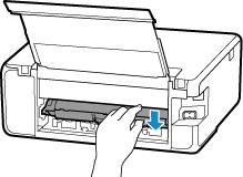 Εισαγάγετε τις προβολές της δεξιάς πλευράς του πίσω καλύμματος στον εκτυπωτή και πιέστε την αριστερή πλευρά του πίσω καλύμματος μέχρι να κλείσει εντελώς.