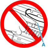Amikor eltávolít valamilyen akadályt a nyomtatófej tartójának útjából, ügyeljen arra, hogy ne érjen hozzá a fehér szíjhoz (A).