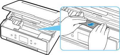 När du flyttar hållaren för skrivhuvudet håller du i överkanten på hållaren för skrivhuvudet och skjuter den försiktigt så långt åt höger eller vänster som möjligt.