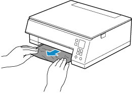 بعد تخزين درج إخراج الورق ودعامة إخراج الورق، اسحب الدرج للخارج ثم قم بإزالة الورق المحشور ببطء بكلتا يديك.