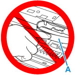 Nell'eliminare l'impedimento che ostacola il corretto movimento del supporto della testina di stampa, prestare attenzione a non toccare la cinghia bianca (A).