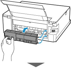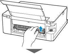 Inserire le sporgenze sul lato destro del coperchio posteriore nella stampante, quindi spingere il lato sinistro del coperchio posteriore fino a chiuderlo completamente.