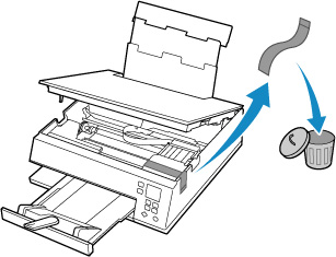 Băng dính để đảm bảo an toàn cho khay chứa đầu in trong quá trình vận chuyển có thể vẫn còn gắn.