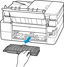 Lēnām līdz galam ievietojiet padeves bloka vāku printerī un noņemiet padeves bloka vāku.