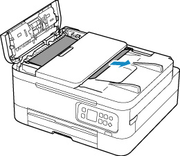 Avaa asiakirjakansi ja vedä juuttunut asiakirja hitaasti ADF:n takaosasta.