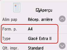Les informations sur le papier permettent de spécifier les paramètres d'impression à l'étape 5.