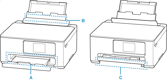 - Hvis papiret ikke sitter fast (ingen støttekode vises), men papiret ikke mates eller skrives ut normalt, kan du se Hva skal du gjøre hvis papiret ikke mates som normalt.