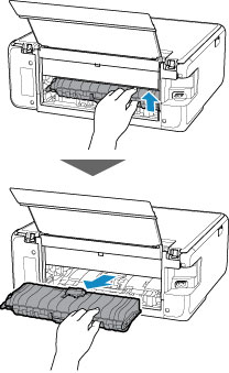 افتح غطاء الدرج الخلفي، ثم اسحب دعامة الورق.